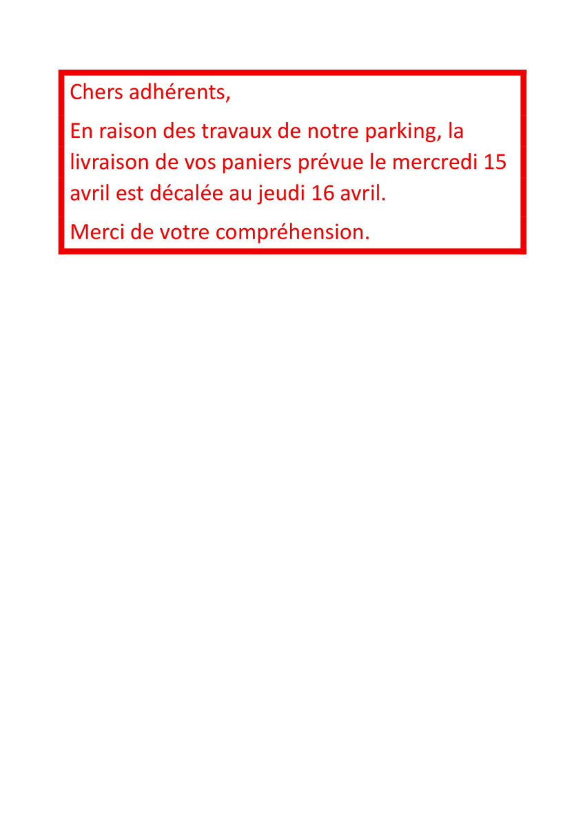 LIVRAISON PRO LE MARDI